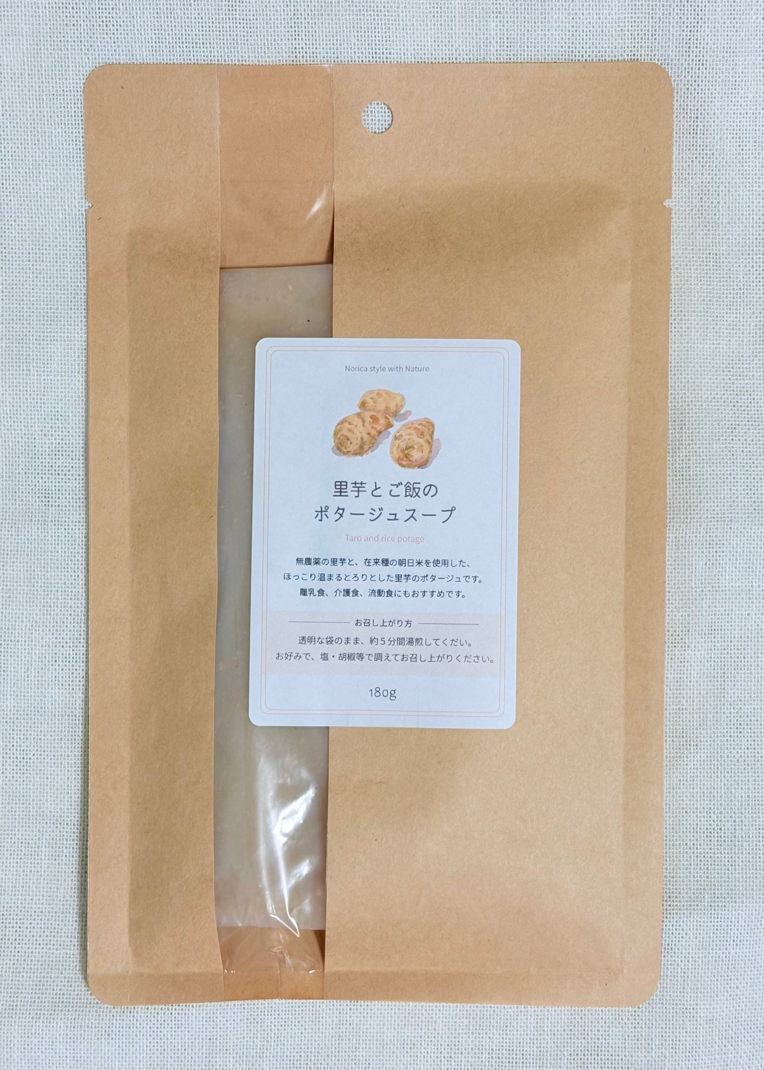 無農薬の里芋と在来種の朝日米を使用した、ほっこり温まるとろりとした里芋のポタージュスープです。