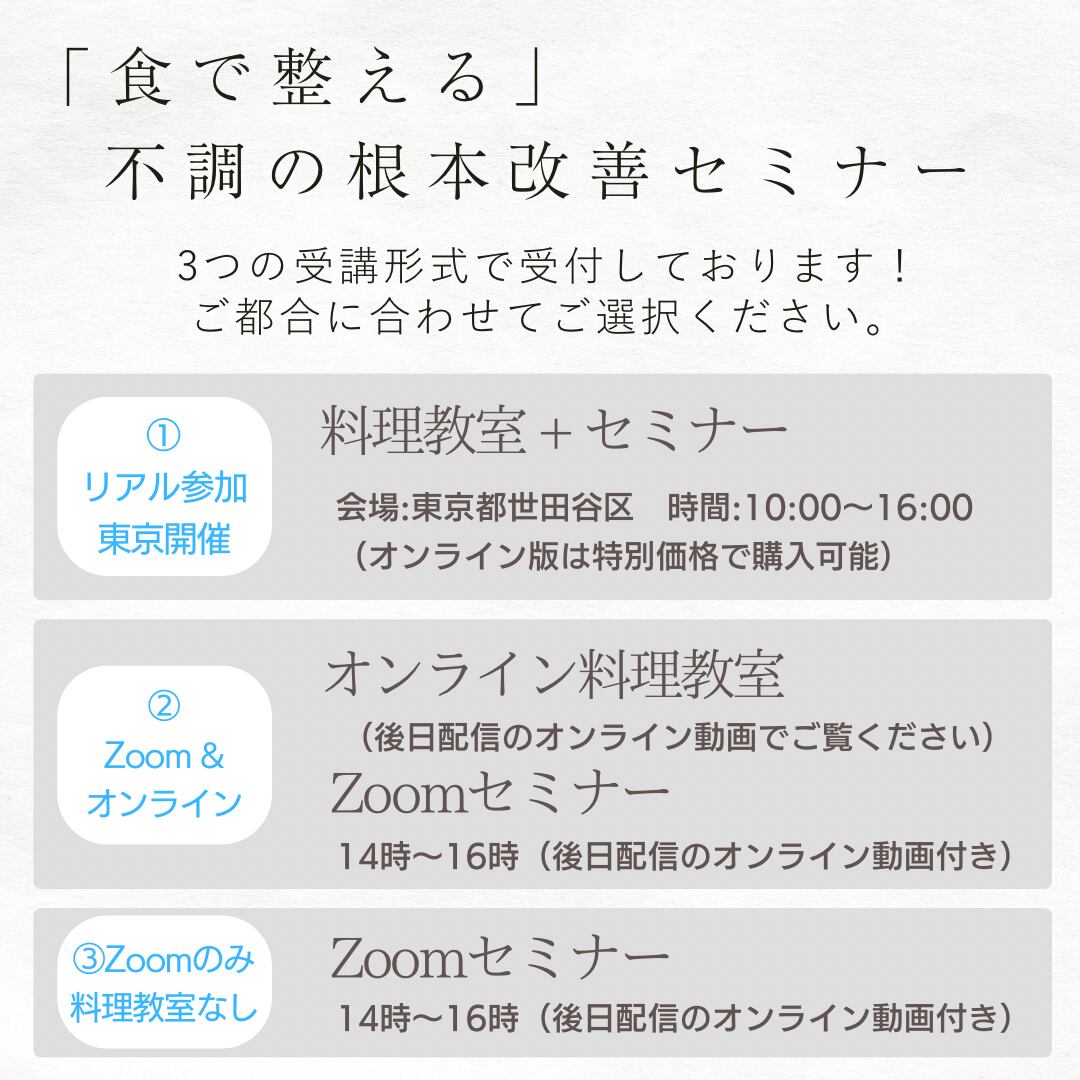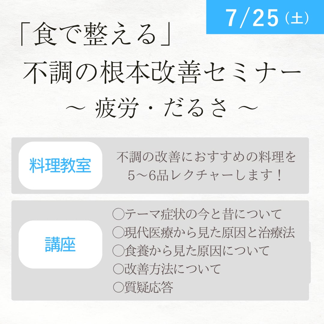 <東京開催/オンライン講座>「食で整える」不調の根本改善セミナー ~疲労・だるさ~